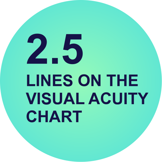 Mức cải thiện trung bình là 2,5 dòng trên biểu đồ mắt và 100% độ nhạy tương phản. Điều này có nghĩa là những gì bạn có thể đọc từ 10 mét trước chương trình bạn sẽ có thể đọc từ khoảng cách 17 mét sau chương trình. Tuy nhiên, mức độ cải thiện khác nhau giữa các cá nhân.